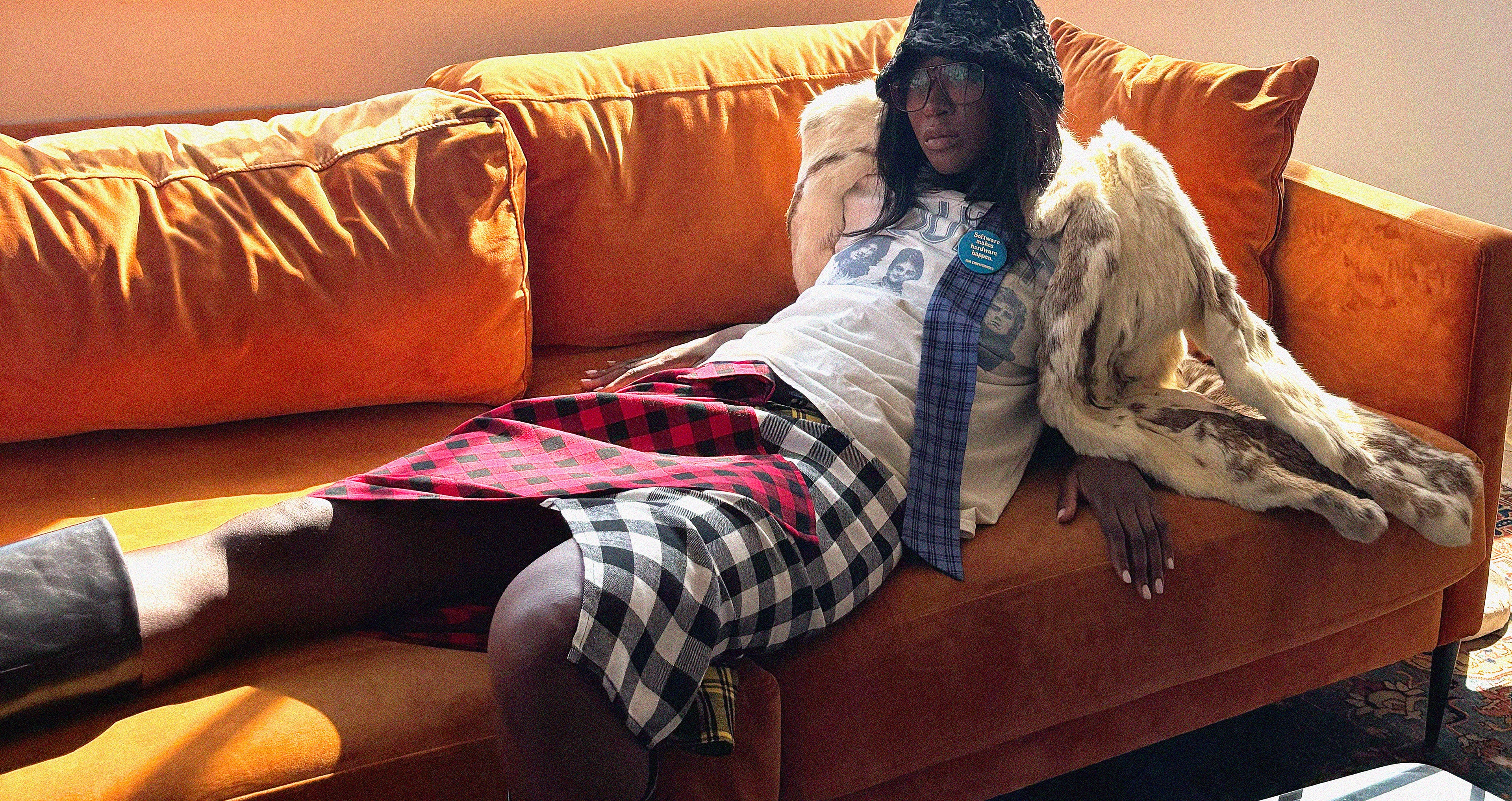 Asymmetric Pinstripe Mini Skirt with Lace Detail